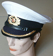 Schirmmütze, Sommerbezug, für Offiziersdienstgrade Korvettenkapitän bis einschließlich Kapitän zur See, 1967-1990, hier wird die Dekoration auf dem Mützenschirm "Eichenlaubranke" genannt |