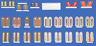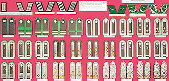 Schulterstücke der Ausgangs- und Dienstuniform in Metall- und gestickter Ausführung. Zur Arbeitsuniform wurden grau lackierte Metallspaten aufgelegt. |