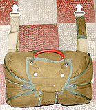 Truppenschutzmaske "SchMS"mit Tasche. Die Klarsichtfolien in den beiden silbernen Schachteln liegen nur auf der Tasche, gehören aber nicht zu diesem Typ. |