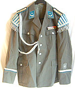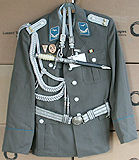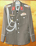 Uniformjacke eines Oberfähnrich aus dem Stabsmusikkorps der Landstreitkräfte. Schwalbennester ohne Fransen wurden von den Spielmannszügen bzw. Standortmusikkorps getragen. |