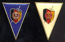Hier die beiden Absolventenabzeichen für Offiziere des MfS. Das weiße Abzeichen erhielten Offiziere, die ihr Studium an der Hochschule des MfS absolvierten, das Blaue war von Absolventen sonstiger Hochschulen zu tragen. |