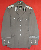 Ausgangsuniform eines Hauptmannes des MfS. Uniformen mit Ärmelpatten aus Metall wurden bis ca. 1982 getragen. |