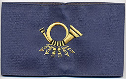 Armbinde zur Kenntlichmachung von Saison- und Hilfskräften, die zusätzlich, z.B. bei hohem Paketaufkommen in der Vorweihnachtszeit, eingesetzt wurden |