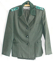Damen-Dienstuniform mit Waldrock und Hose, Dienstbezeichnung Oberförster. |