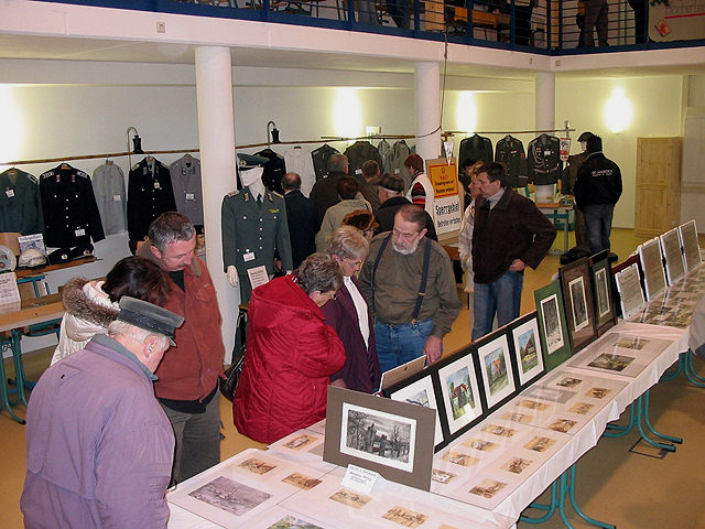 | Der Markersdorfer Wolfgang Heinig (Bildmitte mit Bart) ist ein begnadeter Maler und Zeichner. Er stellt auf meine Einladung hin einige seiner Werke aus, so u.A. Bilder von markanten Gebäuden der näheren Umgebung und Tierportraits, die Interessenten auch gleich erwerben konnten. |