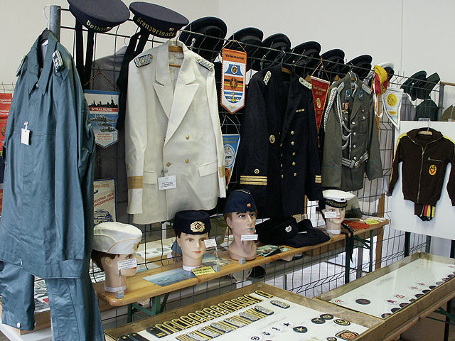 Die Volksmarine in der NVA-Abteilung. Zur cremefarbenen Gala-Uniform des Kapitän zur See fehlt leider noch ein Ehrendolch. Rechts die komplette Uniform eines Leutnant der LSK/LV, aber mit Feldbinde und Ehrendolch.