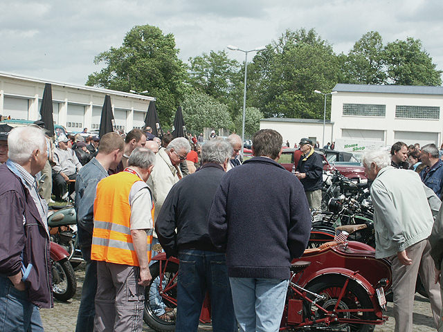 Dichtes Gedränge an den abgestellten 2-Rad-Oldtimern, direkt nach der Rundfahrt zum Flugplatzfest.