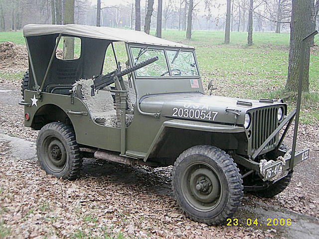 Dieser US-Jeep wurde mit einer Vorrichtung versehen, die feindliche Drahthindernisse zerstören kann.