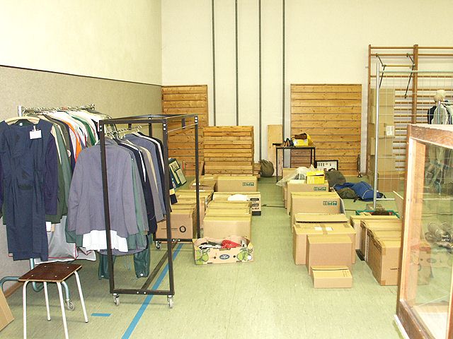 Ankunft in der Turnhalle - das große Auspacken beginnt!