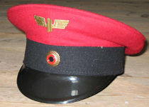 rote Biese: Betriebs-und Verkehrsdienst (BuV), hier Schirmmütze der Ranggruppe II (Sekretäre) |