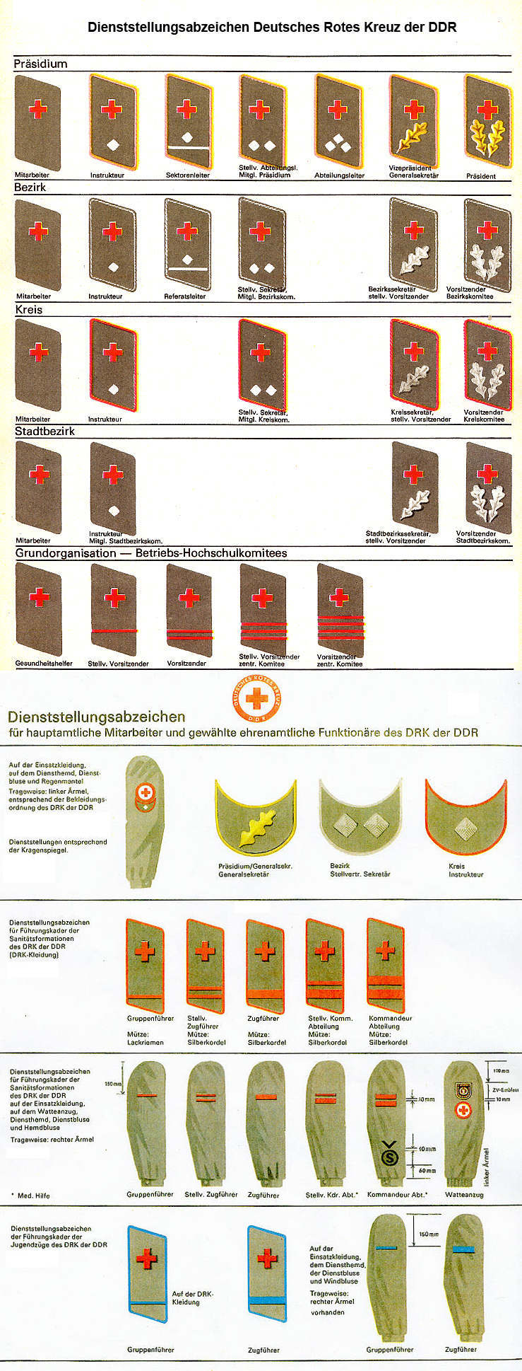 Diese Übersicht wurde in den 1980er Jahren in der DRK-Zeitschrift zusammengestellt. Es fällt mittlerweile schwer, diese Vielfalt noch "aufzutreiben", um die verschiedenen Merkmale ausstellen zu können. Das DRK-Museum in Beierfeld hat mich diesbezüglich schon gut unterstützt, um überhaupt erst mal einige wenige Kragenspiegel in meine Vitrine zu bringen. Herzlichen Dank an dieser Stelle nochmals an den Veranwortlichen, Herrn Uebe! |