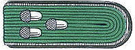 Funktionsabzeichen, auf dem linken Oberärmel zu tragen. Diese Revierförster-Abzeichen sind auf Grund ihrer Stickerei dem Staatsforst zuzuordnen, die Anzahl der Eicheln zeigt die Dienstzeit des Trägers an: