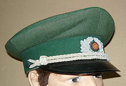 Damen-Forsthut, welcher von der Trägerin ohne Mützenabzeichen getragen wurde (was allerdings nicht der Bekleidungsordnung entprach). |
