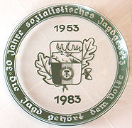 Dieser Glasteller wurde 1983 als Ehrengeschenk verliehen, anlässlich 30 Jahre sozialistisches Jagdgesetz. |
