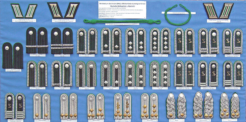 links Anwärter; obere Reihe: Unterwachtmeister / Wachtmeister / Oberwachtmeister / Hauptwachtmeister / Meister / Obermeister / Offiziersschüler (Studienjahre)