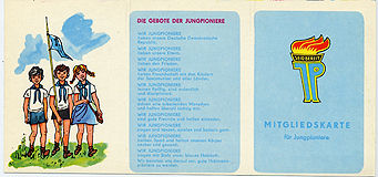 Mitgliedskarte mit den Geboten der Jungpioniere |