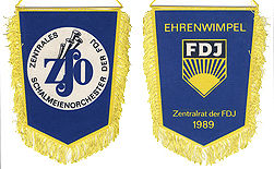 | Wissenswertes: Die Pionierorganisation wurde am 13.12.1948 gegründet und erhielt zum 1. Pioniertreffen 1952 in Dresden den Namen "Ernst Thälmann". Davon abgeleitet wurde jedes Jahr der 13. Dezember als Pioniergeburtstag gefeiert. Als äußeres Symbol wurde von allen Pionieren das blaue Halstuch getragen. Die Schüler der 1. bis 3. Schulklasse trugen die Bezeichnung "Jungpioniere", von der 4. Klasse bis zur Aufnahme in die FDJ, also bis zur 7. oder 8. Klasse, wurde man "Thälmann-Pionier". Ab dem Jahr 1973 trugen nur noch die Jungpioniere das blaue, die Thälmann-Pioniere ein rotes Halstuch. Für die Pioniere wurde auch eine eigene Zeitung gedruckt: die "Trommel". | Wissenswertes: Die FDJ wurde am 07.03.1946, also noch in der sowjetischen Besatzungszone (der späteren DDR), gegründet. Sichtbares Symbol der Mitglieder war das blaue Hemd - die FDJ-Bluse. | |||